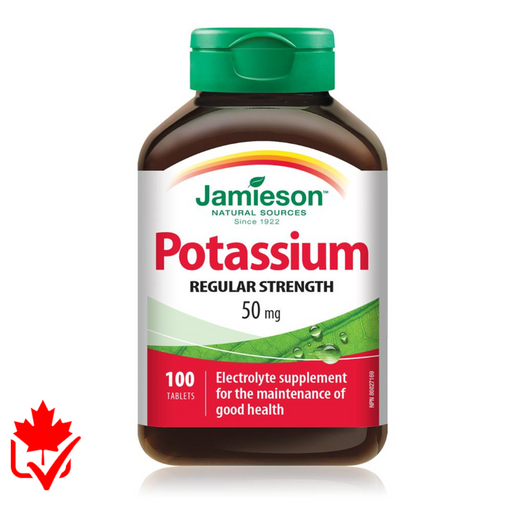 Jamieson Natural SourcesJamieson Potassium 50mg is an electrolyte support formula providing a gradual release of potassium to help regulate fluid balance in the body and p...
